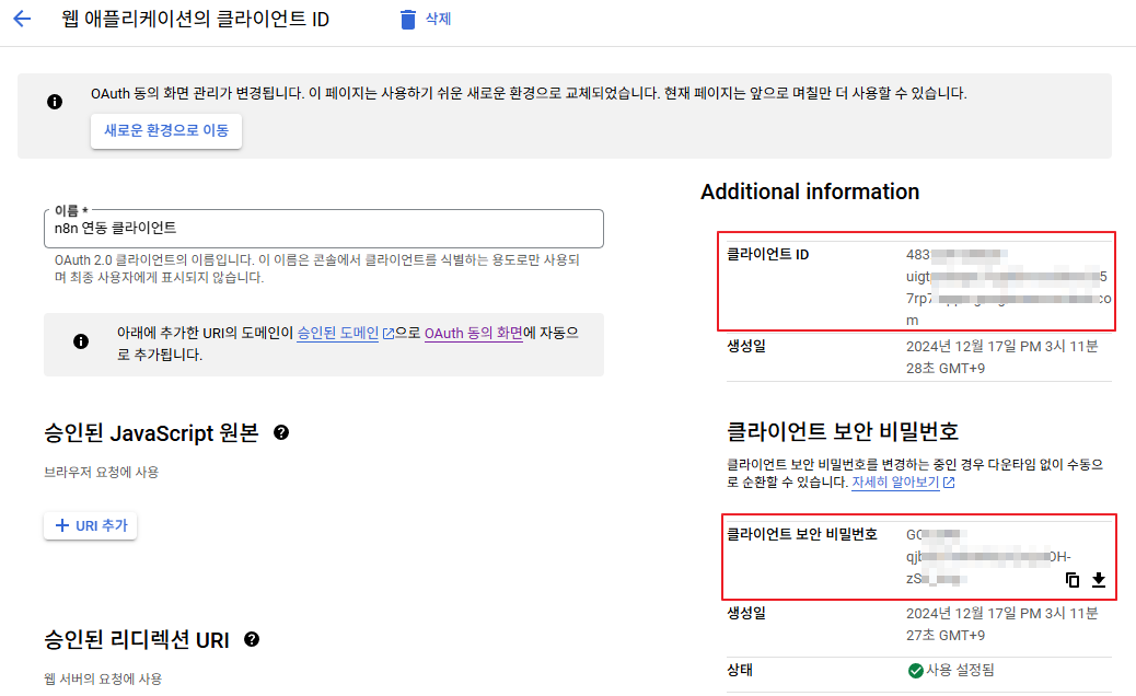 - 그리고 클라이언트 ID 이름을 클릭해서 상세 페이지에서 "클라이언트 보안 비밀번호"도 카피해 둔다.
