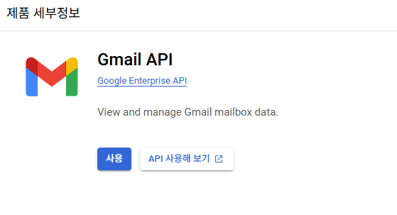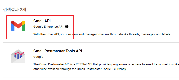- 검색 결과에서 "Gmail API"를 선택한다.