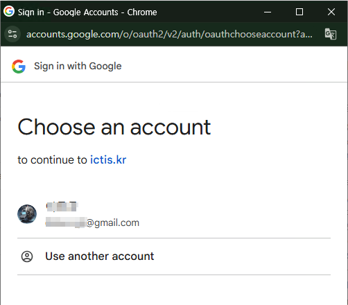 - Choose an account 팝업에서 연동할(구글 클라우드에서 생성했던) 계정을 선택한다.