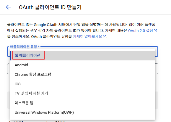 (5) Google OAuth 클라이언트 자격 증명 만들기