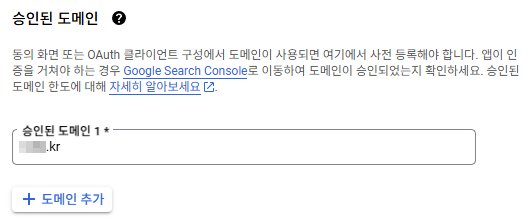 - 승인된 도메인 항목의 "+ 도메인 추가" 버튼을 클릭한다.